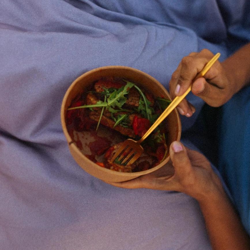 Nasze jedzenie jest w 100% naturalne, świeże i nie ma w nim konserwantów. Ze względu na intensywne kolory niektórych składników (buraki, kurkuma, szpinak) i ich właściwości barwiące na produktach, z którymi się stykają w pudełku, mogą pojawić się delikatne przebarwienia. Jest to zjawisko całkowicie naturalne.
